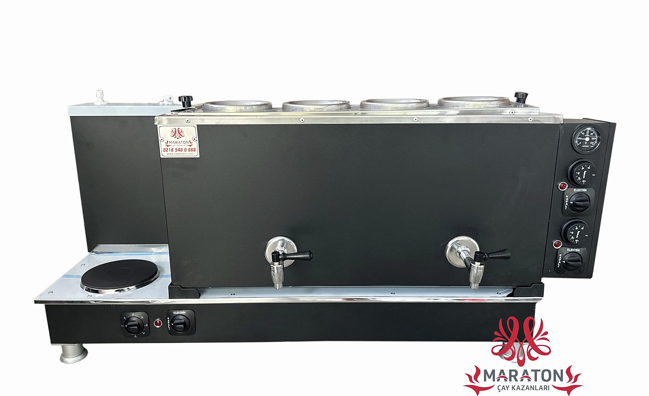 Elektrikli çay kazanıdır.Gaz ile kullanılamaz.Ürünün Dört demlikli elektrikli gazlı çay kazanı modeli bulunmaktadır.Ürün tam otomatik çay kazanıdır.