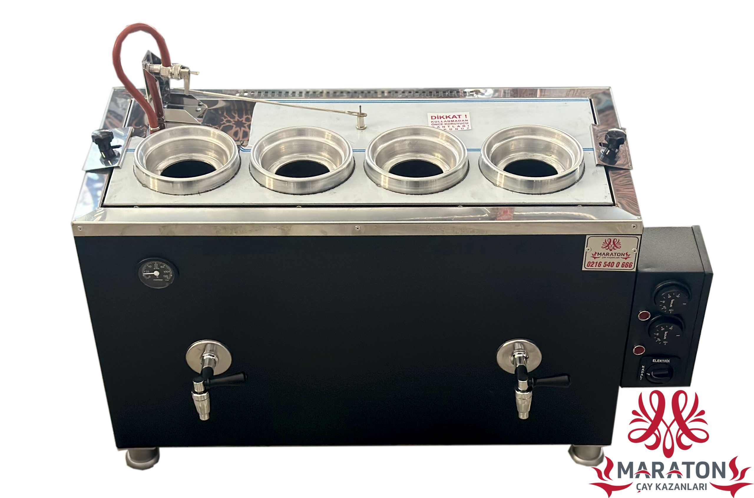Ürün yalnız elektrik özellikli dört demlikli çay kazanıdır.Ürün elektrik özellikli olup şamandıralıdır.Ürün tüplü yada doğalgazlı olarak kullanılamaz.Dört Demlikli Gazlı Çay Kazanı tıklayarak ulaşabilirsiniz.