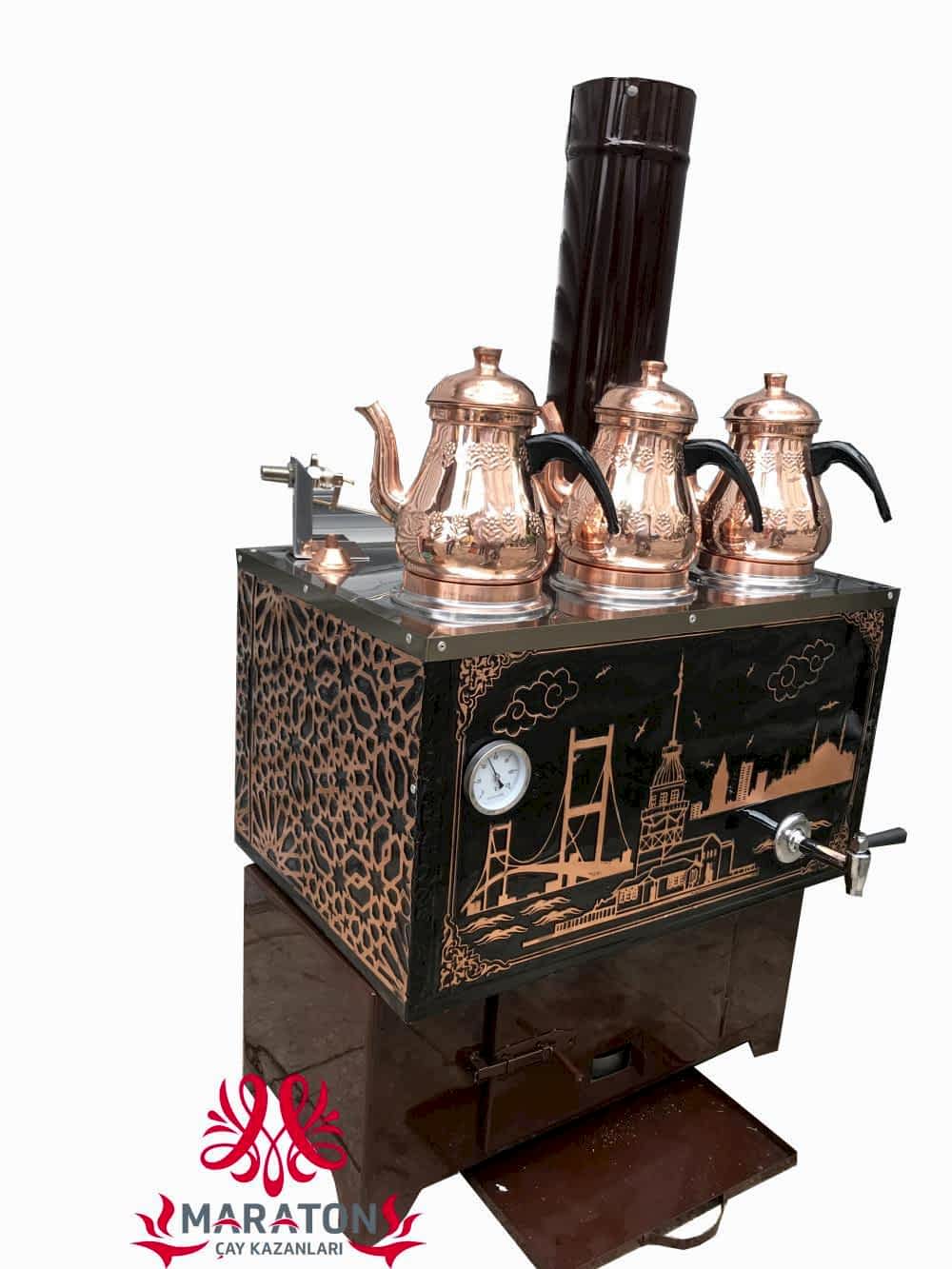 ODUNLU BAKIR ÇAY KAZANI ÜÇ DEMLİKLİ ÇAY OCAĞI